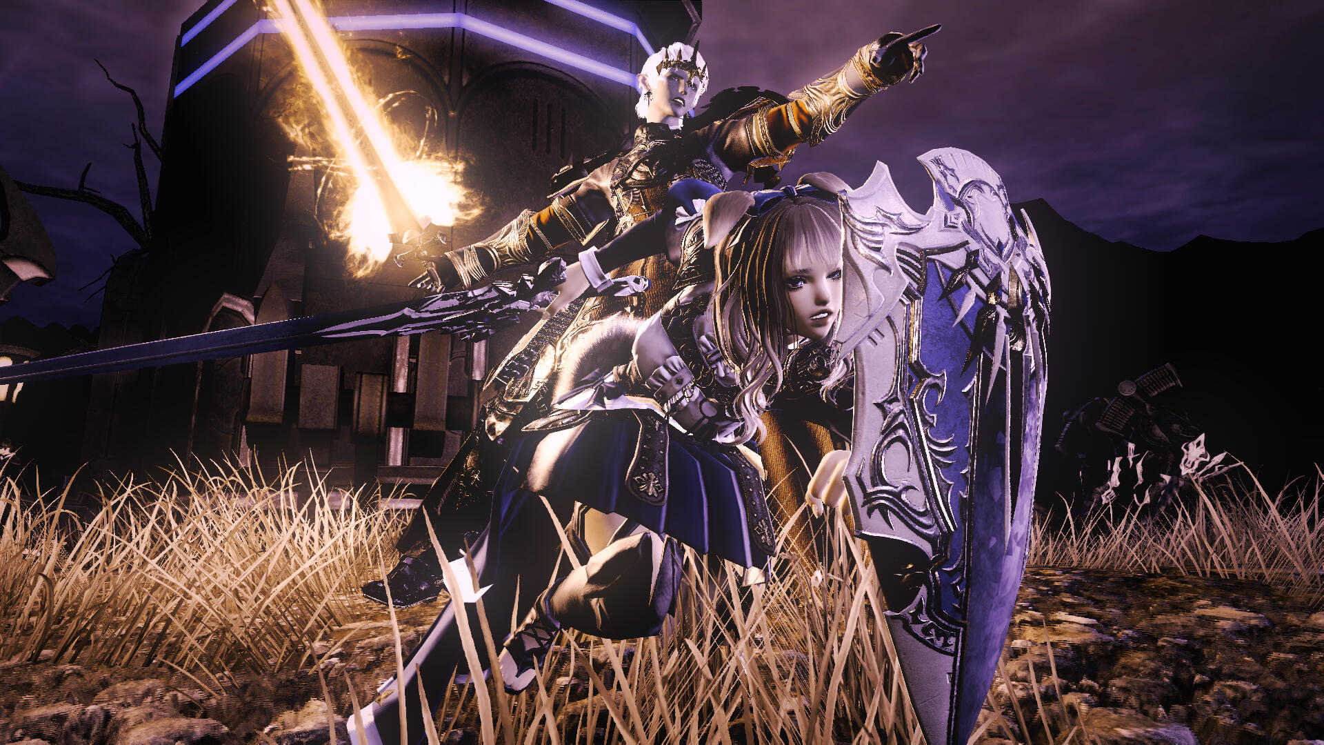 As Lakeland trembled under the siege of sin eaters, Laika Heart, the resolute Warrior of Light, known as Warrior of Darkness in this world, returned to the Crystarium from a prolonged journey through the Rak'tika Greatwood. She, who had just vanquished the light warden that plagued the lush forest, rushed in as fast as possible to Lakeland upon hearing the terrible news. Ebony, on other hand, a former Crystal Brave turned ally of the Crystarium, had been there from the beginning. Activating barriers, aiding the twins, and standing strong against the upcoming threat - Ebony had become an integral part of the city's defense.